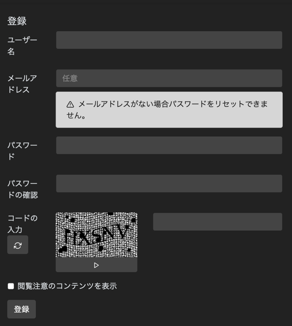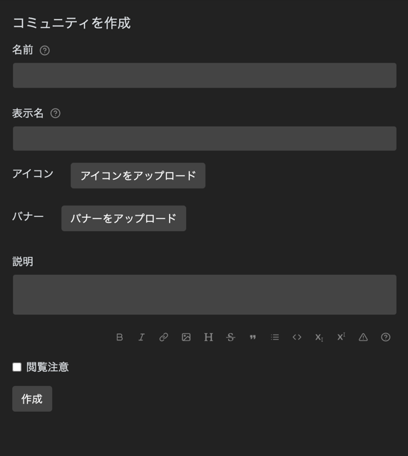 また、 コミュニティの「名前」を「ユーザー名」と同じものにしない様に 注意してください。Misskeyとの連携機能が全て誤動作します。
